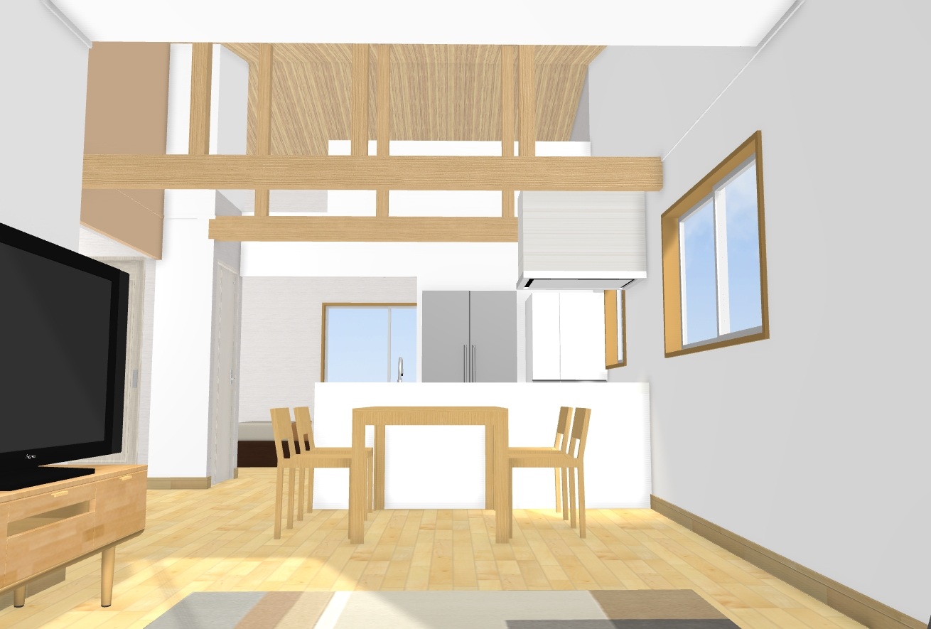 画像のように天井を屋根勾配に合わせて高くするとか、ロフトを設けるとか設計で工夫すれば豊かな空間が生まれます。